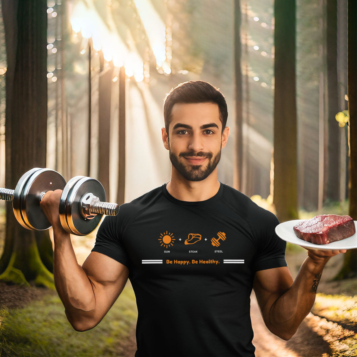 We got you covered. Check out our Sun, Steak, and Steel shirt to help boost the signal for living a happier and healthier lifestyle.